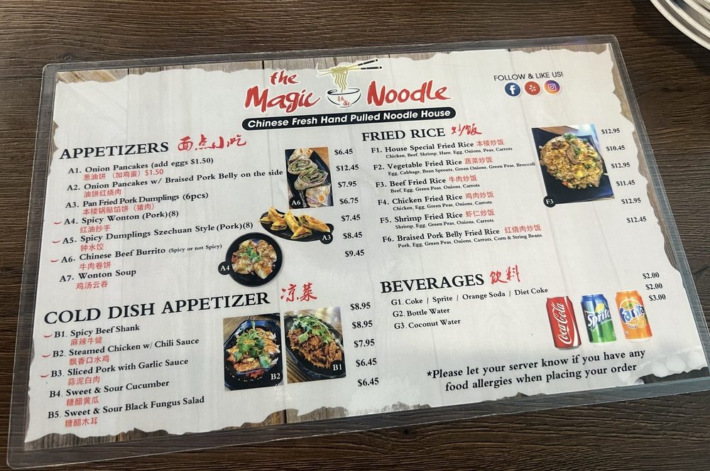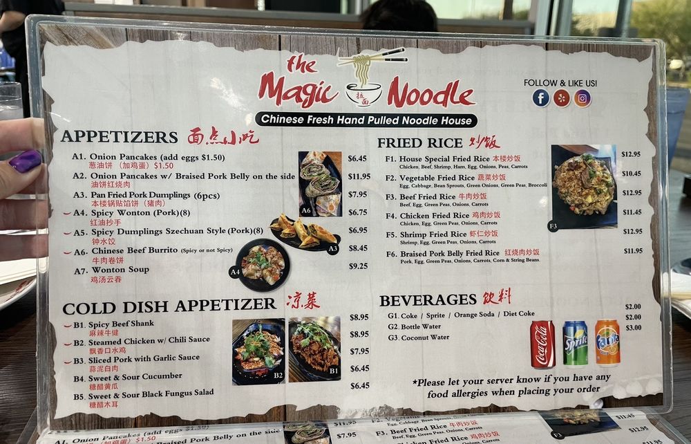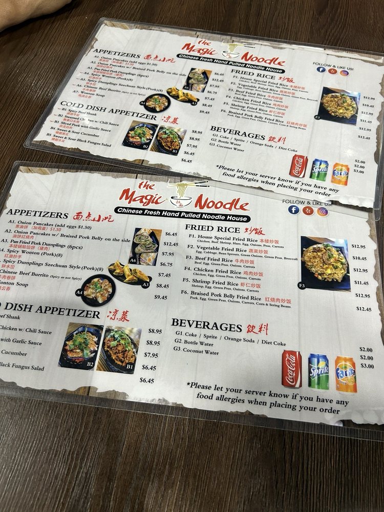 Introducing the menu at The Magic Noodle, located in Las Vegas, is an experience not to be missed. This casual restaurant offers a variety of options, from hand-pulled noodles to flavorful broth-based soups. Customers rave about the dan dan noodles with knife-cut noodles, which are said to be both spicy and refreshing with the addition of peanuts and cucumber. The beef brisket noodle dish and green onion pancakes are also crowd favorites. The texture and chew of the hand-pulled noodles paired with the savory broth and tender meat make for a satisfying meal. Despite some feedback on portion sizes, the overall consensus is that the food and service at The Magic Noodle are top-notch. Don't hesitate to try out this spot for your next meal.